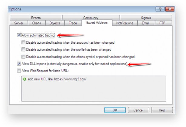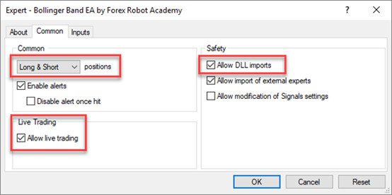 Außerdem muss die Option "Live-Trading zulassen" aktiviert sein, damit der EA automatisch handeln kann. Sobald die oben genannten Optionen ordnungsgemäß aktiviert sind, ist der EA zum automatischen Handel befähigt.